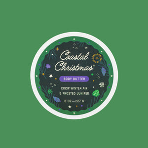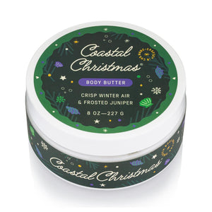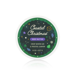 Bring the holidays to your skincare with our Coastal Christmas® Body Butter! This festive scent blends crisp winter air, frosted juniper, fir needle, and evergreen, with cozy notes of white birch, cedar, and amber - like a fresh-cut Christmas tree by the sea. Festive, fresh, and filled with the holiday spirit.