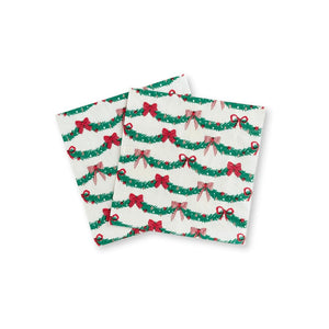 Add a sprinkle of holiday magic to your drink station with our Ribbons & Cheer Christmas Garland Bow Beverage Napkins. These 5" x 5" 3-ply cocktail napkins feature a playful design of colorful bows in red, green, turquoise, and brown, accented with sweet gingerbread-inspired details for a whimsical, festive feel.
