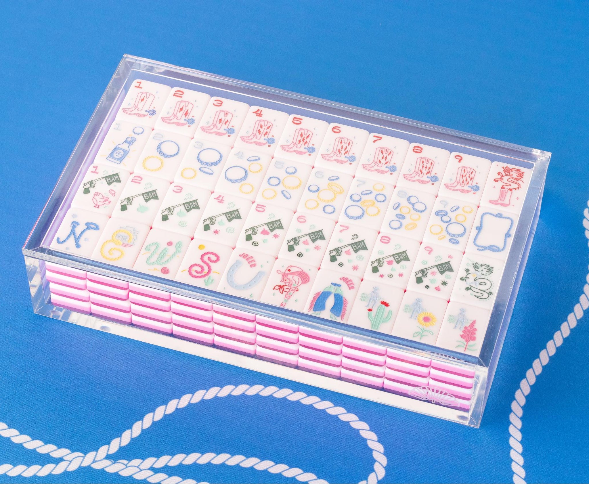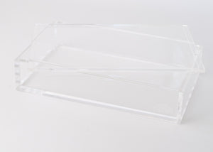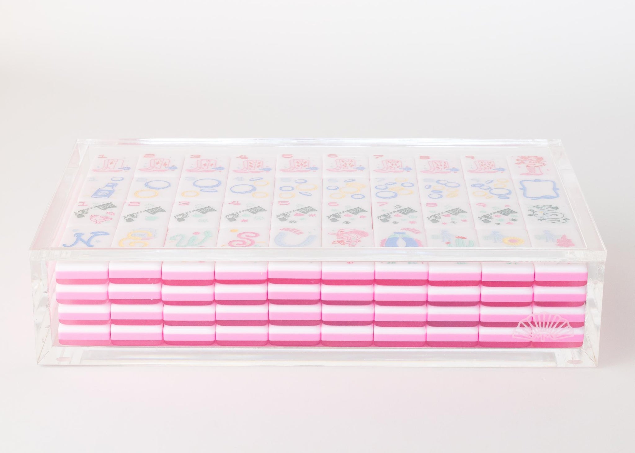 Designed to showcase your Miss Mahjong Mahjong tiles with timeless simplicity, this box features 8 mm thick, clear acrylic and a sleek flat lid for a clean, classic look. Whether you’re displaying Miss Cowgirl or another of our large-format tile sets, it’s a chic way to keep your tiles protected and on display. Fits one set, 160 total, of our large-format tiles (tiles not included), because practical can be pretty, too. Please note: We can't guarantee this will fit tiles from other brands, so be sure to check the dimensions.