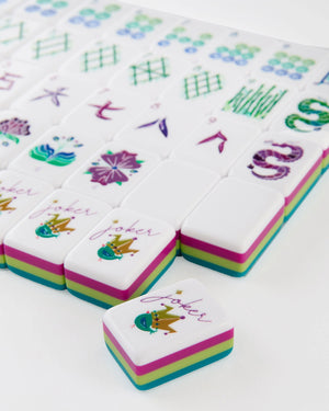 Vibrant, playful, and effortlessly chic, the Lagoon Tiles bring a splash of color and energy to every Mahjong table. Designed in a harmonious palette of blues, greens, and soft pinks, this collection evokes the calm and beauty of a serene lagoon, perfect for players who love a fresh, modern aesthetic. Balanced, eye-catching, and full of character, the Lagoon Tiles turn every round into a joyful and elevated gameplay experience.