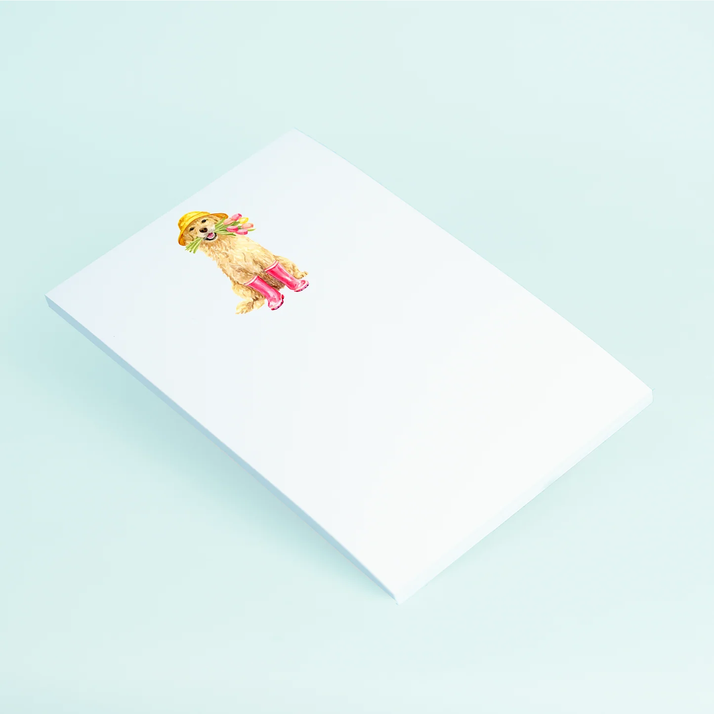 April showers brings May flowers and puppy dog kisses. This notepad is sure to bring a smile to any dog parent's face!