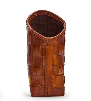 The woven genuine leather exterior exudes sophistication, making it a stylish accessory for your home or office