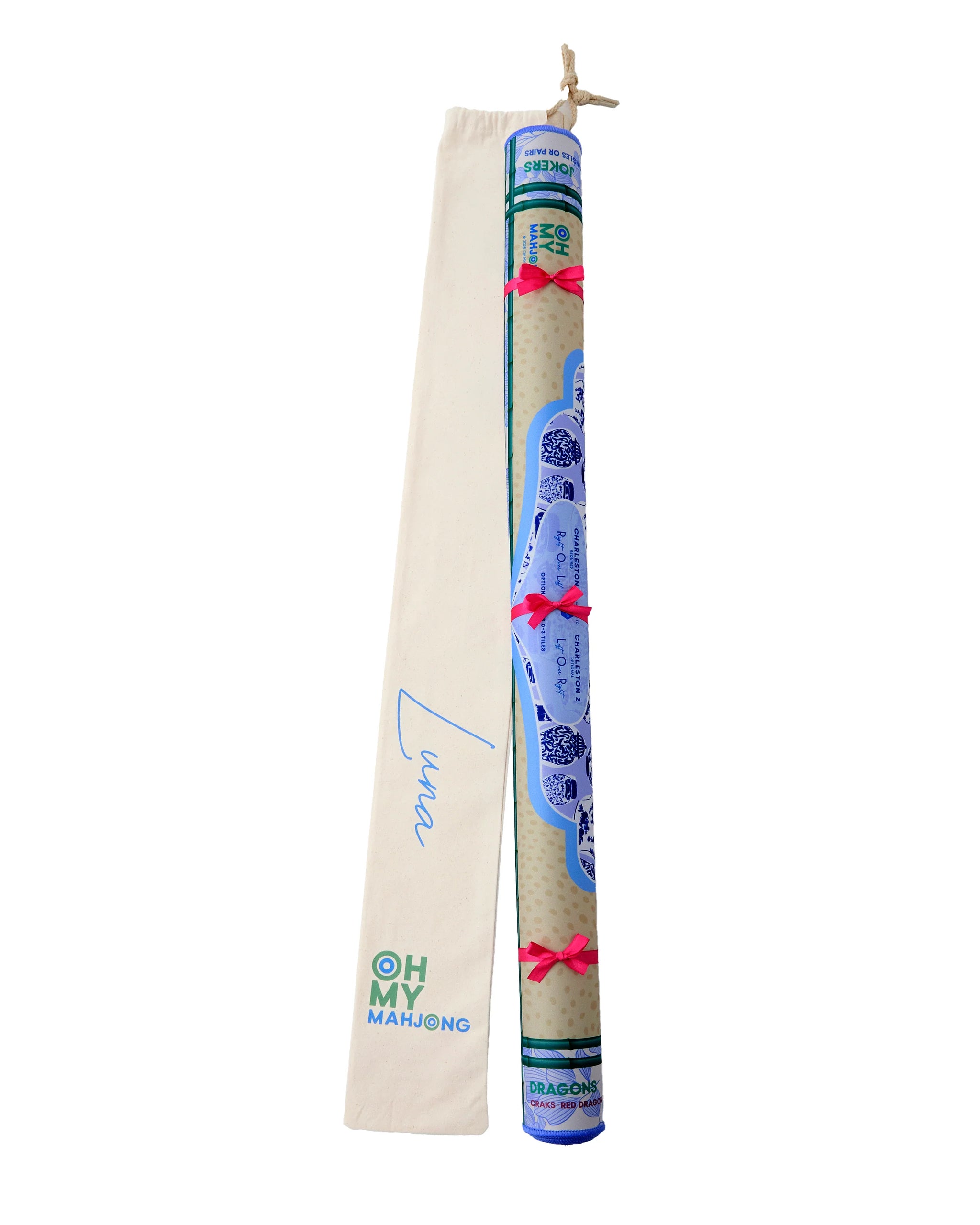 Introducing the Luna Mat — a serene yet statement-making addition to your Mahjong setup, designed for those who love timeless elegance with an artful twist. Awash in calming shades of blue and green, this mat beautifully blends hydrangea blooms, classic ginger jars, and a subtle antelope print for a look that’s equal parts coastal chic and heritage inspired. It’s sophisticated, layered, and quietly luxurious — the kind of pattern that feels right at home in your garden room, beach house, or candlelit game night setting.