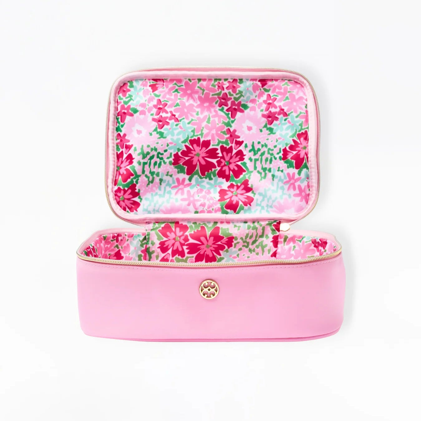 Meet the Make Me Blush bag - a wide yet compact style that's perfect for packing into your suitcase or slipping into your tote! Designed for versatility, this bag offers ample space for all your essentials while maintaining a sleek profile. Its chic design ensures you travel in style, making it an ideal companion for weekend getaways or everyday outings.