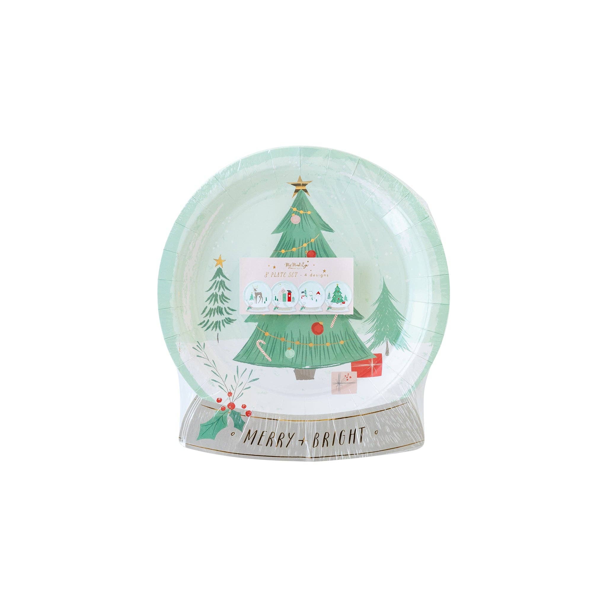 Winter wonderlands aren't just for outside, with these whimsical paper plate set you can bright the winter wonderland to your table this Christmas. Featuring 4 snow globe shaped plates with whimsical wintery designs, these party plates will make a merry addition to your Christmas dinner. And gorgeous gold accents add a stunning effect.