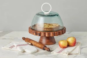 Discover the perfect blend of modern style and whimsical charm with our Round Scalloped Cake Stand. The unique scalloped edges add movement and subtle femininity while the natural acacia wood grain adds texture to your countertop. With its trendy design, this functional piece of art will become a staple in any kitchen. Perfect for displaying cakes, croissants and pastries. Pair seamlessly with a large Glass Cloche for an elevated presentation. Inspired by the classic architecture of 18th Century Europe, the Scalloped Collection captures this old-world charm while blending seamlessly into contemporary aesthetics.