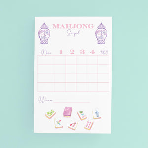 Keep score with this stunning mahjong scorecard! These scorecards match the Taylor Tiles collab with Oh My Mahjong. Write a fun little note on the back to commemorate the fun time had playing mahjong with your besties. Dimensions: 6" x 9" | 50 sheets | Bound at the top
