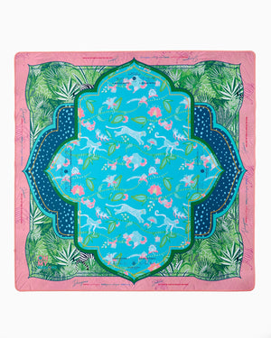 Go wild for the Serengeti Mat, a stunning collaboration with Fort Worth-based fashion designer Sheridan French. Inspired by the jungle's playful spirit and rich beauty, this mat features a lush palette of aqua, coral, and tropical greens, brought to life with cheeky monkeys, striped zebras, and vivid jungle foliage. Designed to pair beautifully with the Glow Wild Tiles (but versatile enough to match many of our sets), the Serengeti Mat brings a sense of adventure, color, and charm to every game.